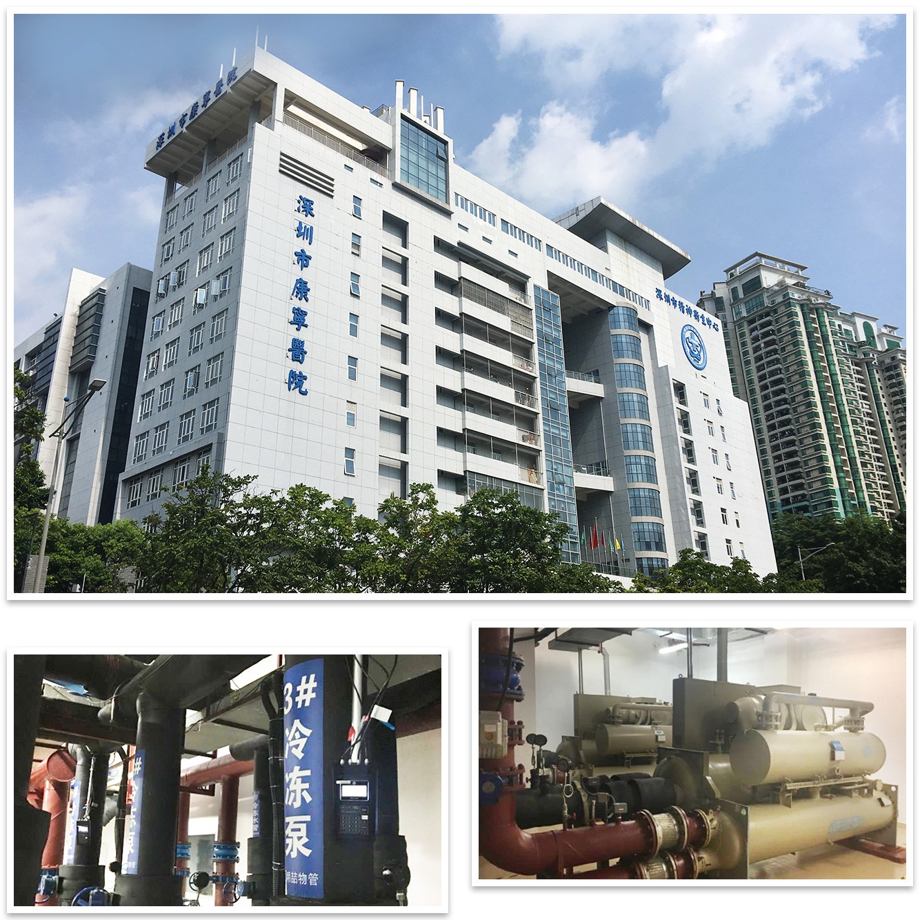 项目介绍:深圳市康宁医院共 3 组中央空调机组,每个机组的制冷量为:250冷吨